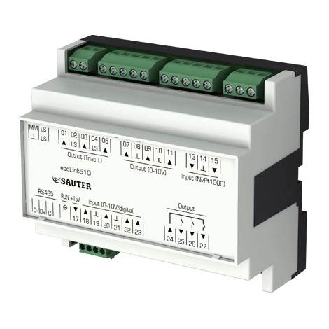 Produit de la famille de systèmes SAUTER EY-modulo 5. Régulation, commande, surveillance et optimisation des installations Techniques d’exploitation, p. ex. automatisation de locaux ou équipements CVC. Module E/S déporté pour ecos500, 504, 505. Intégration dans la communication des servomoteurs au niveau des unités de gestion locale. Peut être déporté jusqu’à une distance de 500 m par rapport aux UGL. Tension de fonctionnement: 24VAC. Fréquence: 50-60Hz. Intensité: 0,5A.